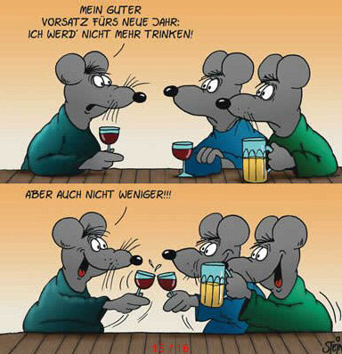 Meine Vorsätze sind klar. Nicht mehr Rauchen, nicht mehr Trinken, nicht mehr Fluchen. Gopfertammi, jetzt isch mr grad Zigaretta ins Biarglass khait.