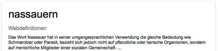 • Ein Nassauer ist eine Person, die sich ohne Gegenleistung von anderen Personen aushalten lässt. Beispielsweise indem sie bei jemandem wohnt, ohne Miete zu zahlen, oder ständig dort isst, ohne irgendetwas zum Essen beizutragen.