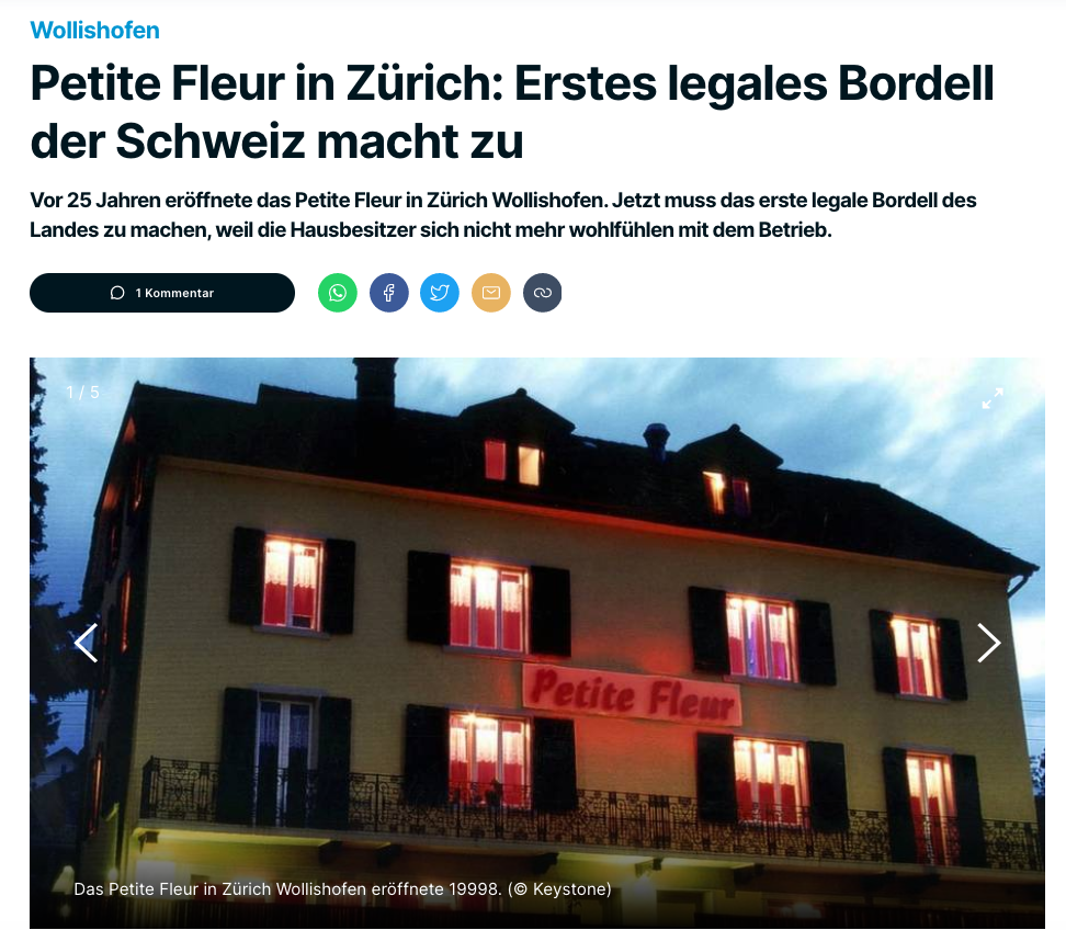Am 25. Februar 1998 wurde in Zürich-Wollishofen das «Petite Fleur» eröffnet, nachdem der Zürcher Stadtrat grünes Licht für die Umbau- und Umnutzungsbewilligung gegeben hatte. Damit war das Rotlicht-Etablissement das erste legale Bordell der Schweiz – eine Sensation, die durch Milieuanwalt Valentin Landmann (73) medienwirksam begleitet wurde. Widerstand und Rekurse aus dem Quartier konnten die Eröffnung damals nicht verhindern.