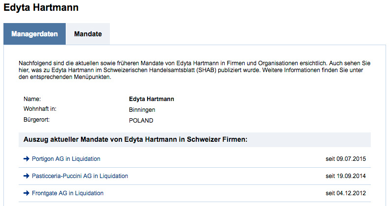 Die Pleite-Firma: Multi Image AG haben sie im Internet vergessen aufzuführen, da war ebenso Edyta Hartmann neben Davide Moncecchi als Zeichnungsberechtigt im Verwaltungsrat, jetzt wie sollte es anders sein: in Liquidation.