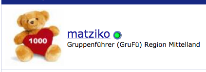 Noch eine Bitte: Lösch doch bitte die dumme Fussnote, hast du nicht nötig.Finde die Diskussion um den Gruppenführer immer wieder interessant. An was die Leute immer zuerst denken. Googelt mal. Dann werdet ihr feststellen dass es auch in der Schweiz Gruppenführer gibt.