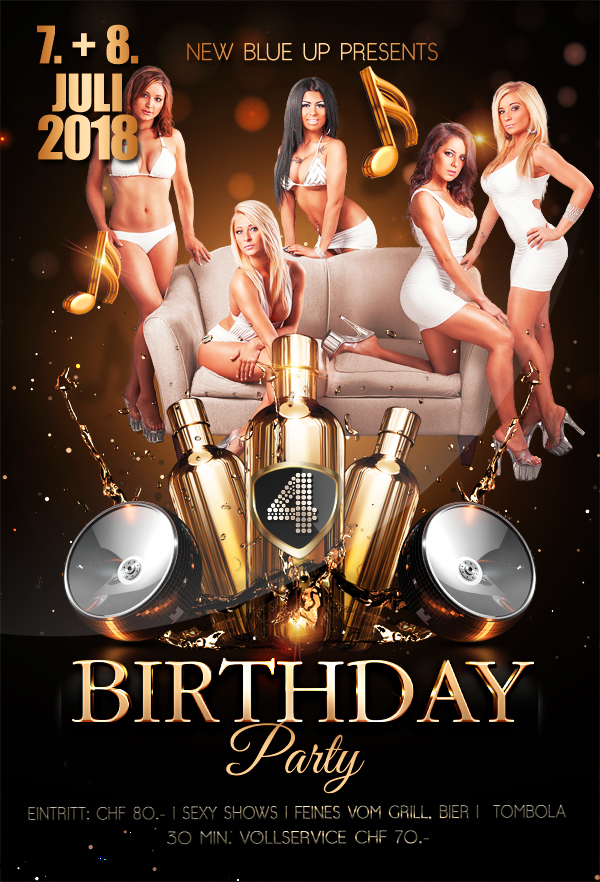 und es ist auch absolut legitim, eine ausschweifende 4. Birthday Party, ein Jubiläum zum 4. Geburtstag zu feiern. Das sollte nicht zu soft, sondern supersexy verschärft daher kommen, attraktive Gäste bieten und die eine oder andere Überraschung, um die nötige Spannung zu erzeugen, die man nicht nur in der Leiste, sondern auch in Sachen Unterhaltung haben möchte. Am Samstag den 07.07. und Sonntag den 08.07. steigt die große Sause u.a. mit diversen sexy Shows, Feines vom Grill, Bier und einer Tombola mit inteessanten Preisen. Selbstverständlich werden auch eine Vielzahl an attraktiven Ladies mit feiern und sich besonders um die erotischen Bedürfnisse der Gäste kümmern. Eine prickelnde Birthday Party frei nach dem Motto "come and celebrate" erwartet die Besucher, die sicherlich wieder ein voller Erfolg werden wird. -