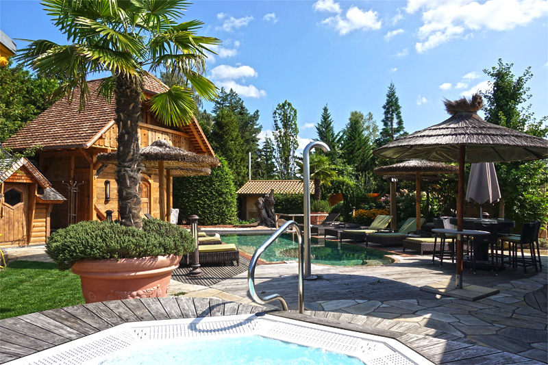 Was für ein Garten? Die Terrasse im BlueUp hinter dem Sichtschutz ist genau 3 Meter Breit und ca. 15 Meter lang. Darauf steht ein Camping-Pavillonzelt mit einem Tisch, ein paar Liegen, 3 Palmen und ein Whirlpool aus dem Baumarkt. Das ist eine improvisierte Terrasse und alles billigstes Niveau. Das als Garten zu bezeichnen ist der Witz des Jahrhunderts :o.