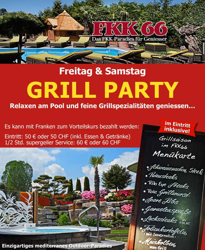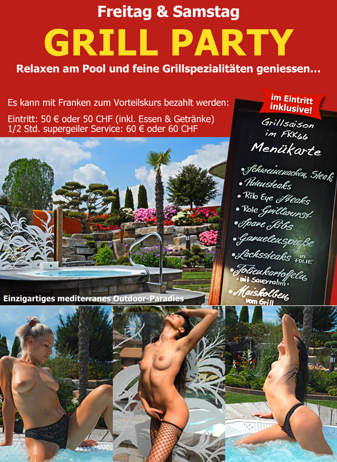 * Grillbeginn Aussenküche 16 Uhr bis ca. 22 UhrFKK66 – Der Club für Geniesser