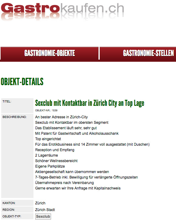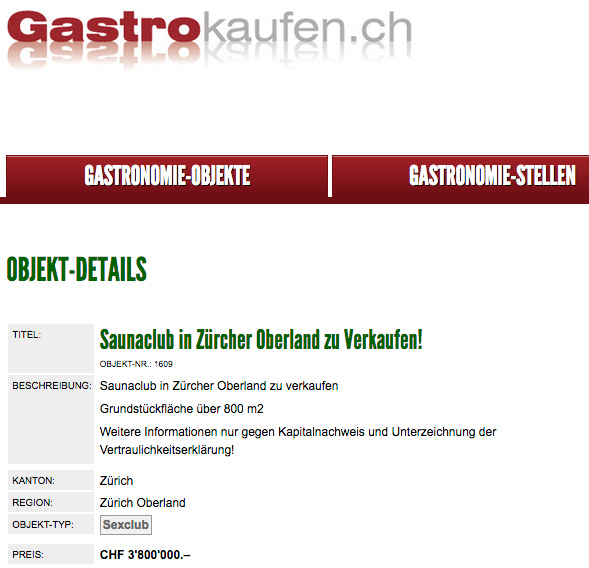 Aber eben, in Pfäffikon bekommst Du noch für 1.8m ein kleines, altes Häuschen mit 500m2 Boden, aber sicher nicht ein alleinstehendes, modernes Geschäftshaus mit vielen Parkplätzen und Umschwung. Schon gar nicht ein gut geführtes Bordell.