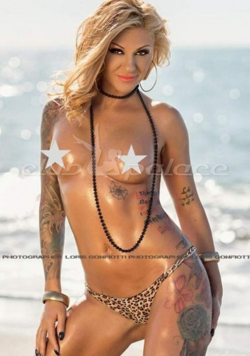 Sie ist unübersehbar im Palace, ca. 178 cm gross, nicht mehr ganz so schlank wie auf den Fotos, aber mit immer noch knackiger Figur, mit wilder blonder Lockenmähne und einer unglaublichen Präsenz, nicht nur bei ihren Bühnenshows, bei der sie sich alle möglichen riesigen Dinge in ihre Öffnungen schiebt, sondern auch ganz allgemein im Club, wo sie mit ihrer aufgedrehten Art eine locker-heitere Atmosphäre verbreitet, wenn man sie denn mal zu Gesicht bekommt, denn sie ist gut gebucht und ein Publikumsmagnet.