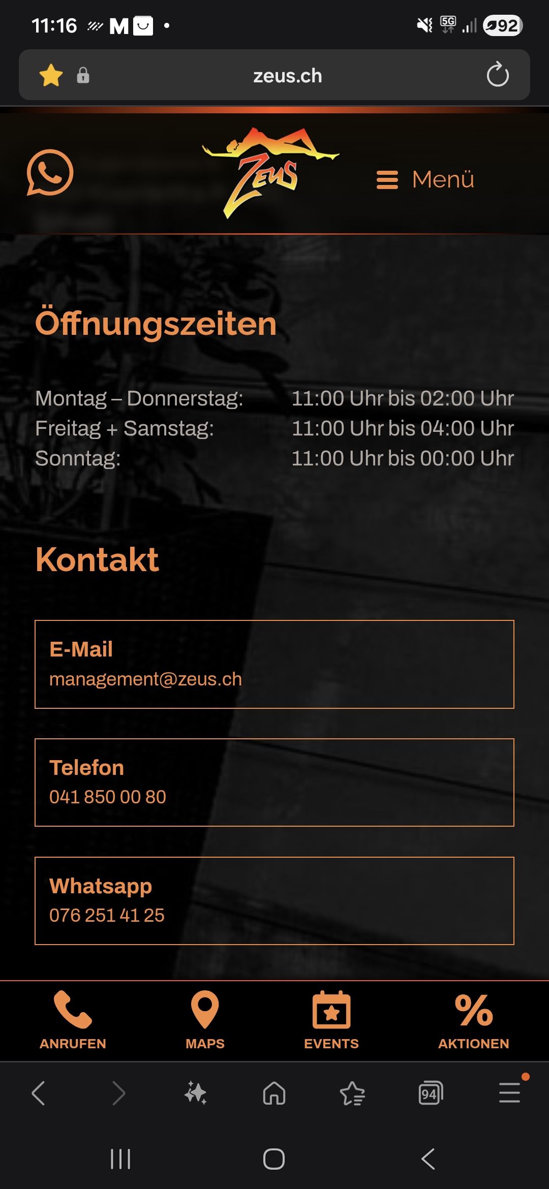 • Kann nur vom Zeus sprechen, da wurden anfragen oder reservationen ab der ersten Whatsapp Nachricht die die auch auf der Seite vermerkt haben immer ab Öffnungszeit beantwortet oder es gab rückfragen.