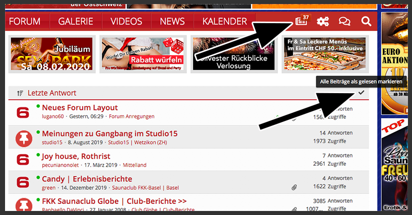 - Wer keinen Bock aufs Lesen hat und diese Liste lieber löschen möchte, klickt dazu auf den Haken "Alle Beiträge als gelesen markieren"