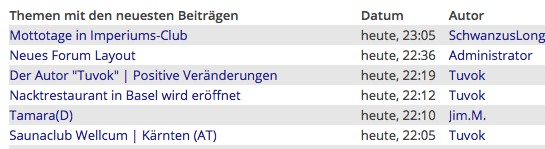 Ausser der Funktion "ungelesene Beiträge" wird im Forum Hauptaugenmerk auf die Liste "Themen mit den neuesten Beiträgen" gelegt, eine sehr übersichtliche Auflistung mit Datum, Uhrzeit, Autor, Zugriffszahlen: