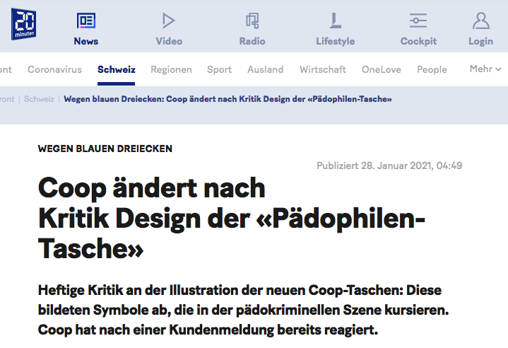 Hier sieht man wirklich wunderschön wie es eine Stossrichtung gibt. Kleines Skandälchen ist ok. Cancel Culture sowieso. Eine Tasche, jeder hat eine Meinung, Problem ist gelöst - aber was ist der "verbotene" Teil? - Der verbotene Teil ist dass es vielleicht (!) wirklich ein Pädo-Drecksack war, der den Sack designte. In der Langeweile oder um seine Gleichgesinnten zu beeindrucken, whatever.