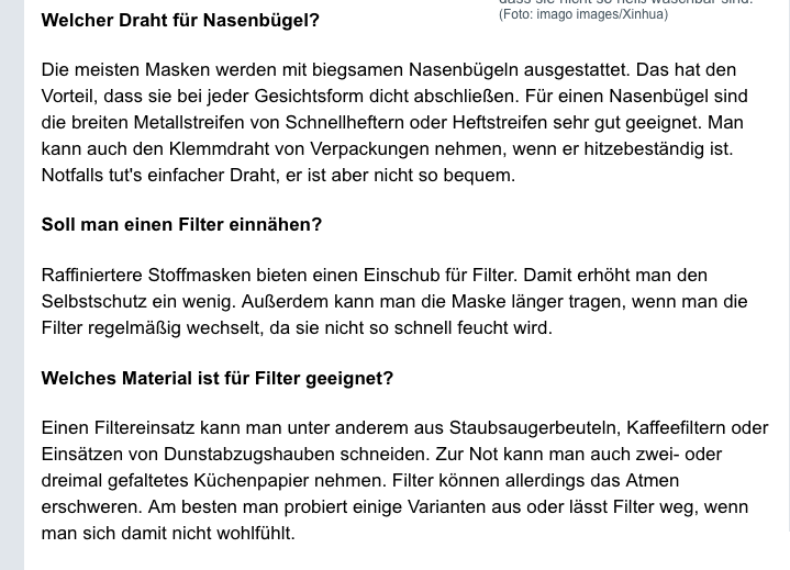 Du hast recht, jetzt reichts dann so langsam mit dem Corona Spiel. Die WHO und Pharma Hörigen können sich zuhause weiterhin ihre Behelfsmasken häkeln mit eingestrickten Kaffeee-Filtern und Schnellhefter-Nasenbügel