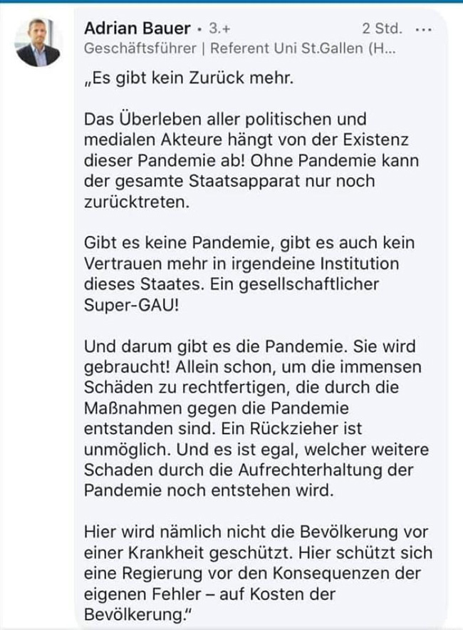 Es gibt keinen Ausweg aus dieser Scheisse ohne dass wir in den Spiegel schauen wie kaputt unsere Welt ist. Titelseite "20 Minuten" heute Adolf Alain Berset "Es gibt keine Abstimmung über Lockdown" (oder so ähnlich, ich seh das meistens nur im Vorbeigehen). Wie Merkel dazumal "Alternativlos". JA, wir können vielleicht nicht abstimmen... aber wählen können wir. Und bitte stimmt bald ab, dass man die Finanzen von Abstimmungen offen legt, sonst geht es noch sehr lange abwärts.