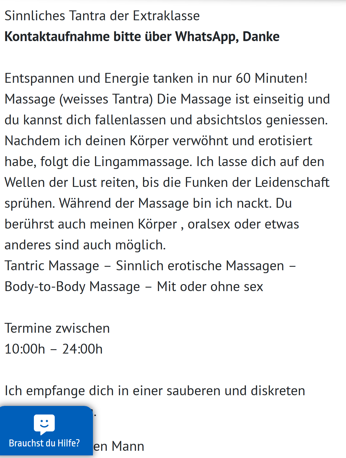 Angaben in dem dem Inserat entsprechen laut Aussage der Lady der Wahrheit. Mann O Mann,