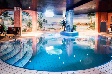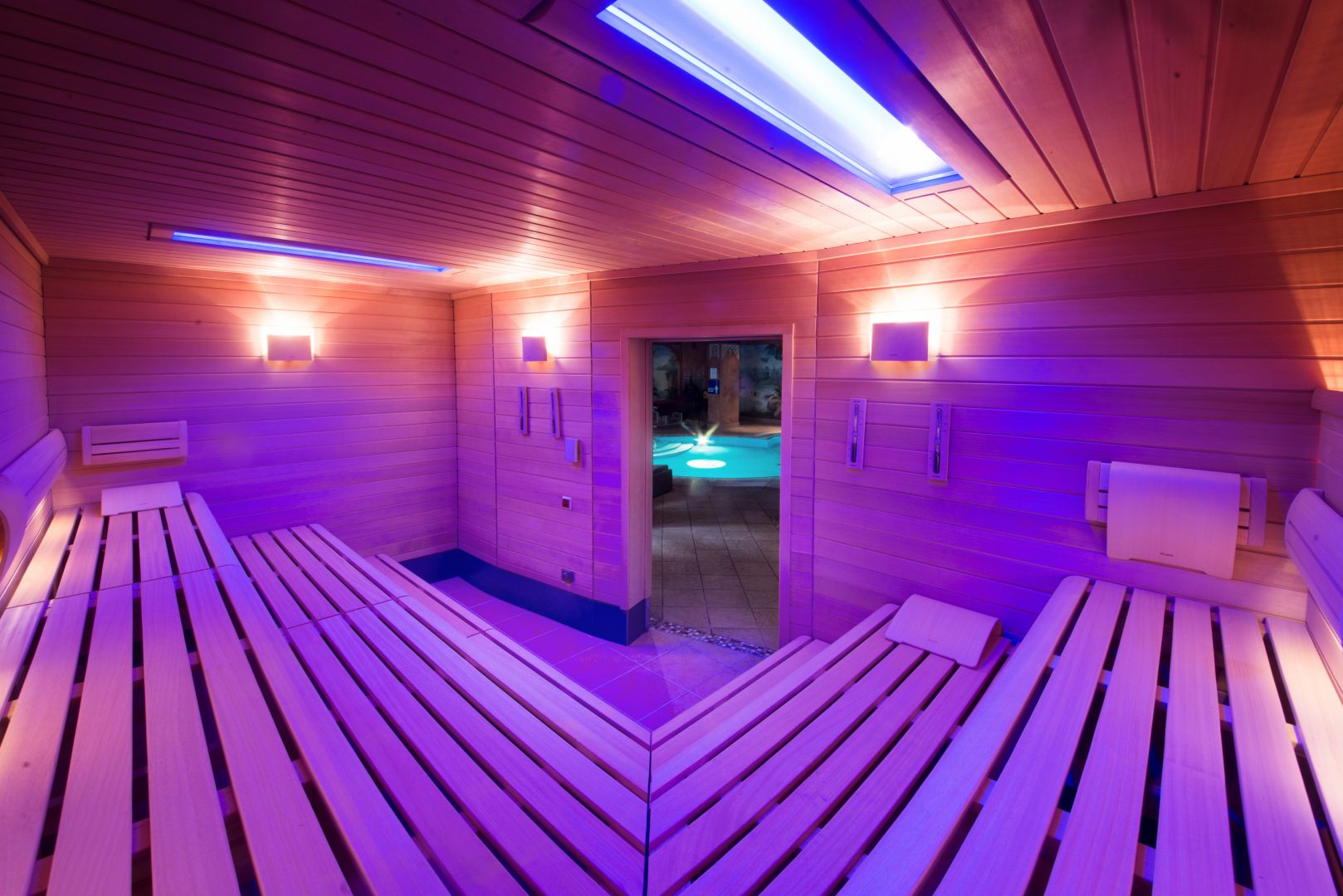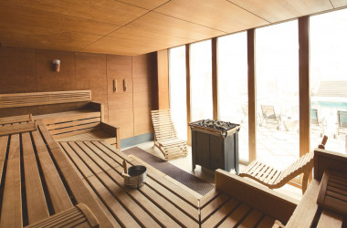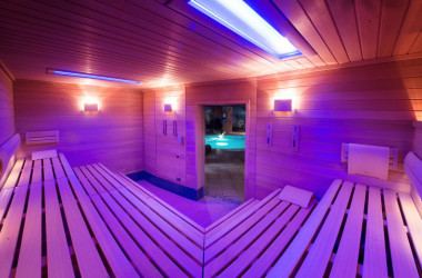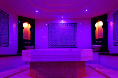 Es hat dort eine Finnische Sauna, ein Hamam, ein Pool, einen Masseur mit Liege und eine Bar.