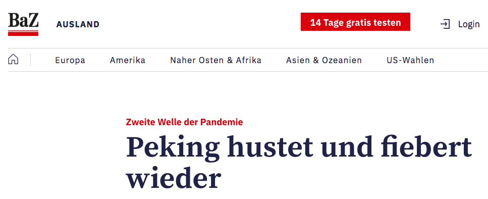 Was China betrifft sind die aktuellen Peking-Fälle ja eigentlich sogar die "Dritte Welle". Die Harbin-Fälle vor einiger Zeit waren ja die "Zweite Welle" >> https://brf.be/international/1375319/