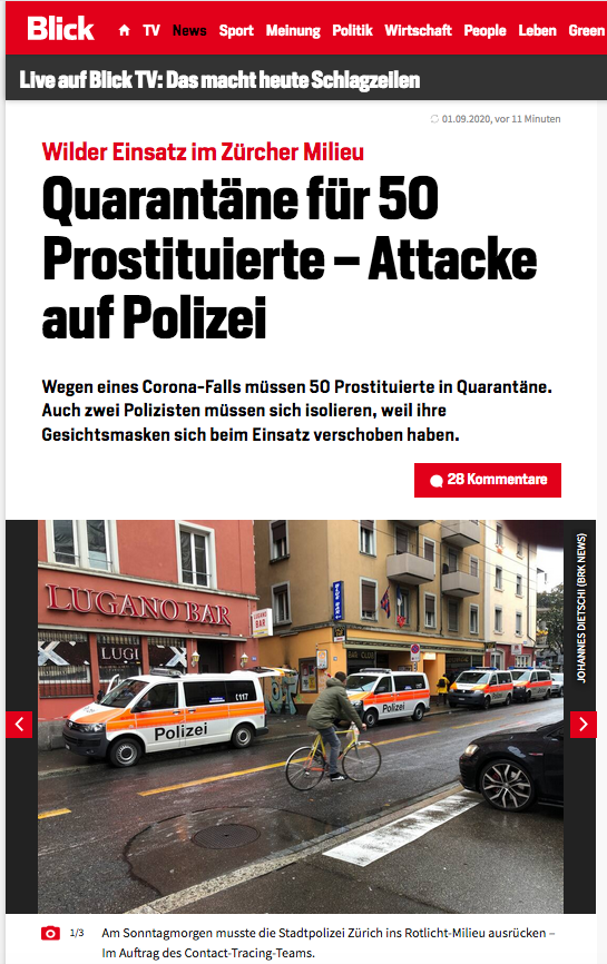Am Sonntagmorgen musste die Stadtpolizei Zürich ins Rotlicht-Milieu ausrücken. Im Auftrag des Contact-Tracing-Teams sollten sie einer Frau an der Langstrasse 108 ausrichten, dass sie sich wegen eines Corona-Tests vom 28.08.2020 beim Contact-Tracing-Team melden müsse, da sie zuvor telefonisch nicht erreicht werden konnte.