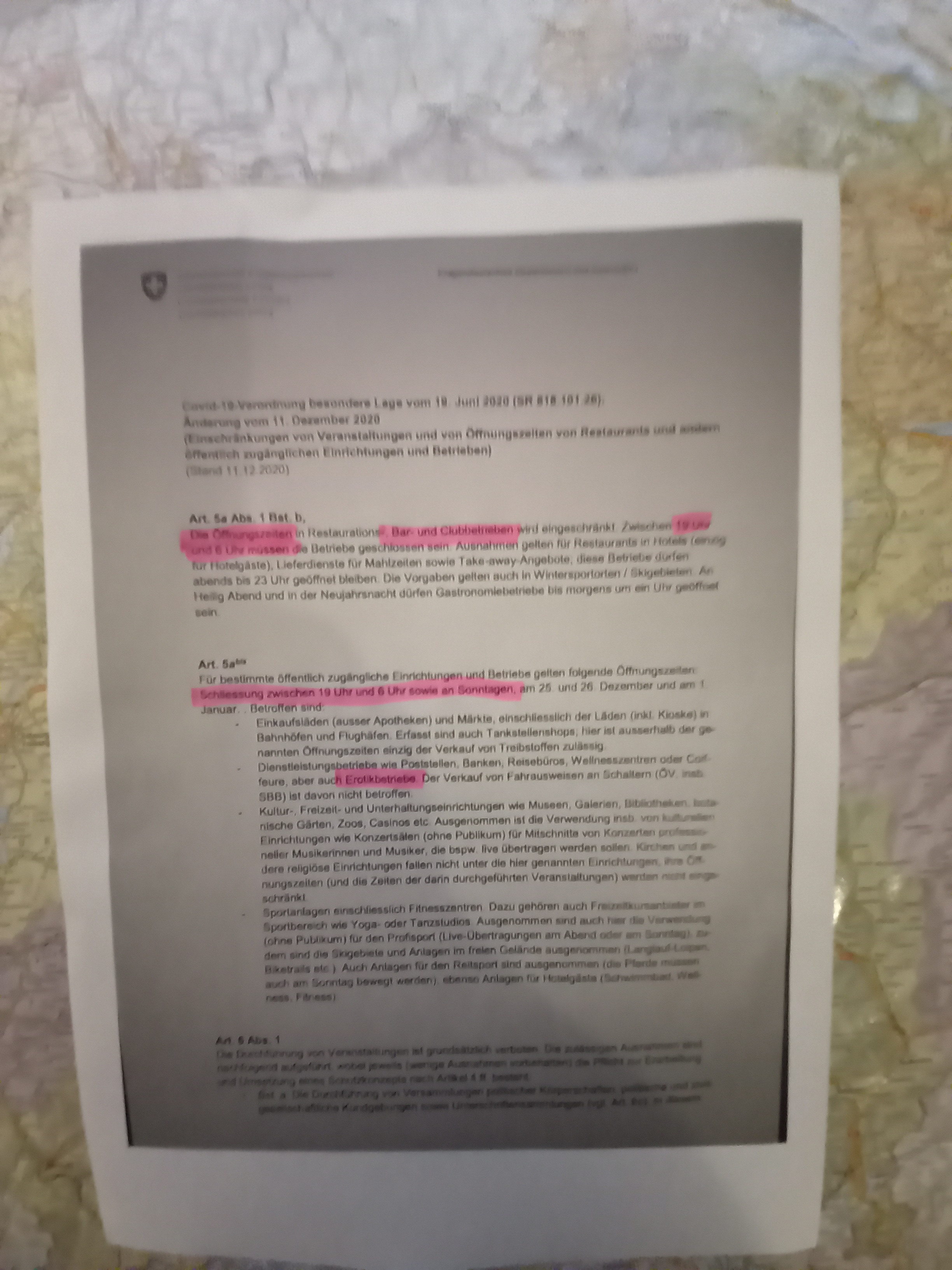 Eigentlich sollte man zwischen den allgemeinen Schliesszeiten von 19 bis 6 h, welche auch am Sonntag gelten (Art. 5a Abs. 1 Best. b) und den gleichen Schliesszeiten mit zusätzlichem Sonntagsöffnungsverbot für bestimmte Betriebe ( Art. 5 a bis)....