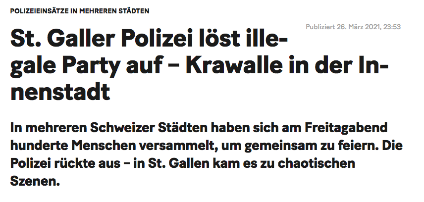 Sankt Gallen brennt! Tränengas & Gummigeschosse fliegen durch die Luft! Weil sich junge Menschen an einem Freitagabend versammeln kommt ein Helikopter und Hunderte an Polizisten!
