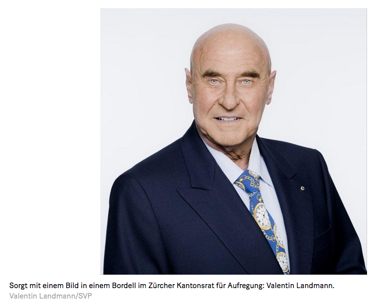 «Volles Haus und glückliche Männer» titelt die «Schweizer Illustrierte» (SI) vom 4. Juni. Es geht um die grosse Öffnung nach dem Lockdown. Im Bild zeigt die Zeitschrift den SVP-Kantonsrat und Anwalt Valentin Landmann, der sich einer barbusigen Prostituierten zuwendet. Zwei weitere nackte Frauen sind von hinten zu sehen. Das Quartett befindet sich im Grossbordell Globe in Schwerzenbach.