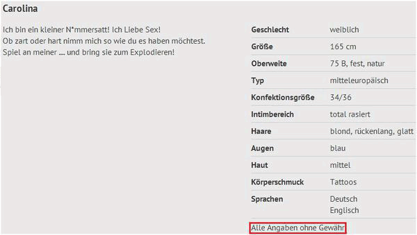 Angaben auf HP's sind meiner Auffassung nicht belastbar. Nimm einfach eine Sedcard mit gelisteten Serviceleistungen oder die Altersangaben in vielen Fällen nicht zu 100 Prozent stimmig.