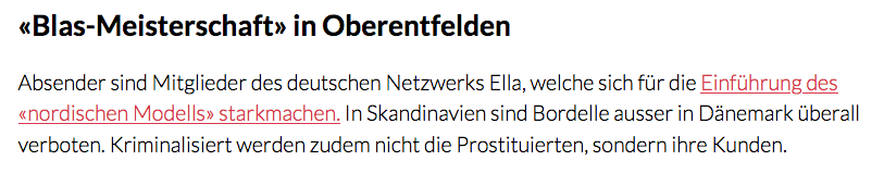 Und genau darum geht es. Ein an sich harmloser Event wird von Kreisen, welche die Prostitution mit allen Mitteln bekämpfen und am liebsten das "nordische Modell" einführen wollen, dazu missbraucht, Propaganda zu machen.