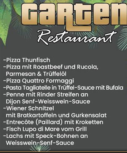 Es gab knusprige Pommes, saftige Burger, Pizza, Steak, Fisch oder Pastagerichte zur Auswahl. Zusätzlich ein immer aufgefrischtes Salatbuffet und diverse Nachspeisen, wie Eis oder Tiramisu.