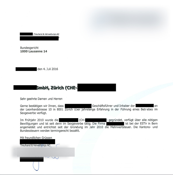 Ich habe den Eindruck, wir kommen so nicht weiter. Deshalb möchte ich das Gespräch mit Dir jetzt beenden. Jetzt nehme ich den Ausgang und verlasse die Arena bzw. die Diskussion mit Dir. Zum Schluss möchte ich aber noch ein Bestätigungsschreiben von unserem Buchhalter zeigen, was er in Zeiten der Rekursen an das Bundesgericht geschrieben hat.