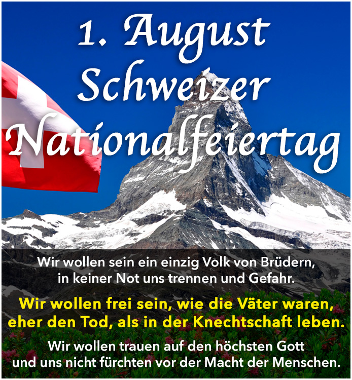 Am ersten August feiert unser Land Nationalfeiertag, obwohl der Bundesbrief von 1291 kein genaues Datum trägt, werden wir am kommenden Freitag vermehrt wieder die Höhenfeuer aufflammen lassen. An diesem geschichtsträchtigen Tag werden wir unseren Vorfahren gendenken welche in der Talschaft Uri, Schwyz und Unterwalden für uns Blut und Leben gelassen haben und in der Schlacht am Morgarten für unsere Freiheit und Unabhängigkeit, ohne zu zögern in die Auseinandersetzung mit den habsburgischen Invasoren gegangen sind. Es wären Männer die Familien und Kinder hatten, es wären Männer die Angst und Furcht um ihr Leben hatten, aber es waren auch Männer welche Stolz und Rückgrad hatten.