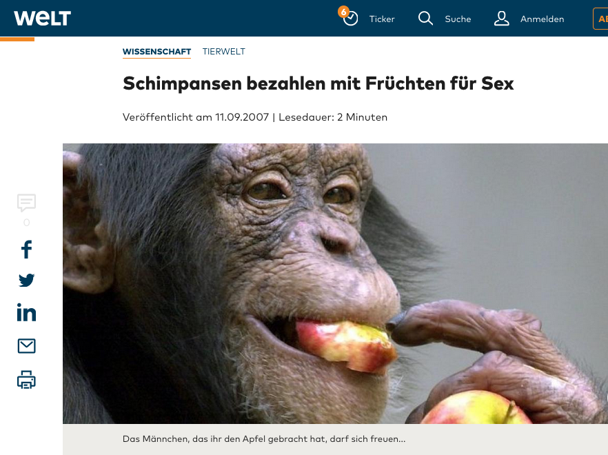 Schimpansen bezahlen mit Früchten für Sex