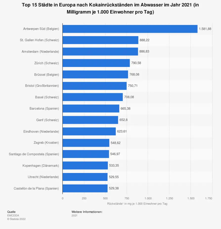 Koks ist schon überall angekommen. Eine Linie hochreinen Koks kostet in der Schweiz zwischen 5 und 6 SFR, also weniger als ein Bier 🤷‍♂️.