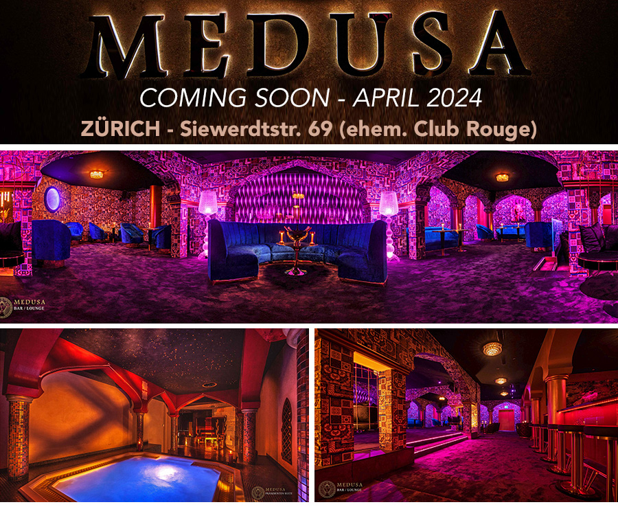 Die Location ist bekannt (ehemals Club Rouge), Club Medusa und als Event Location und wurde nun von einem neuen Betreiber übernommen.Medusa Zürich - der edelste Saunaclub der Schweiz