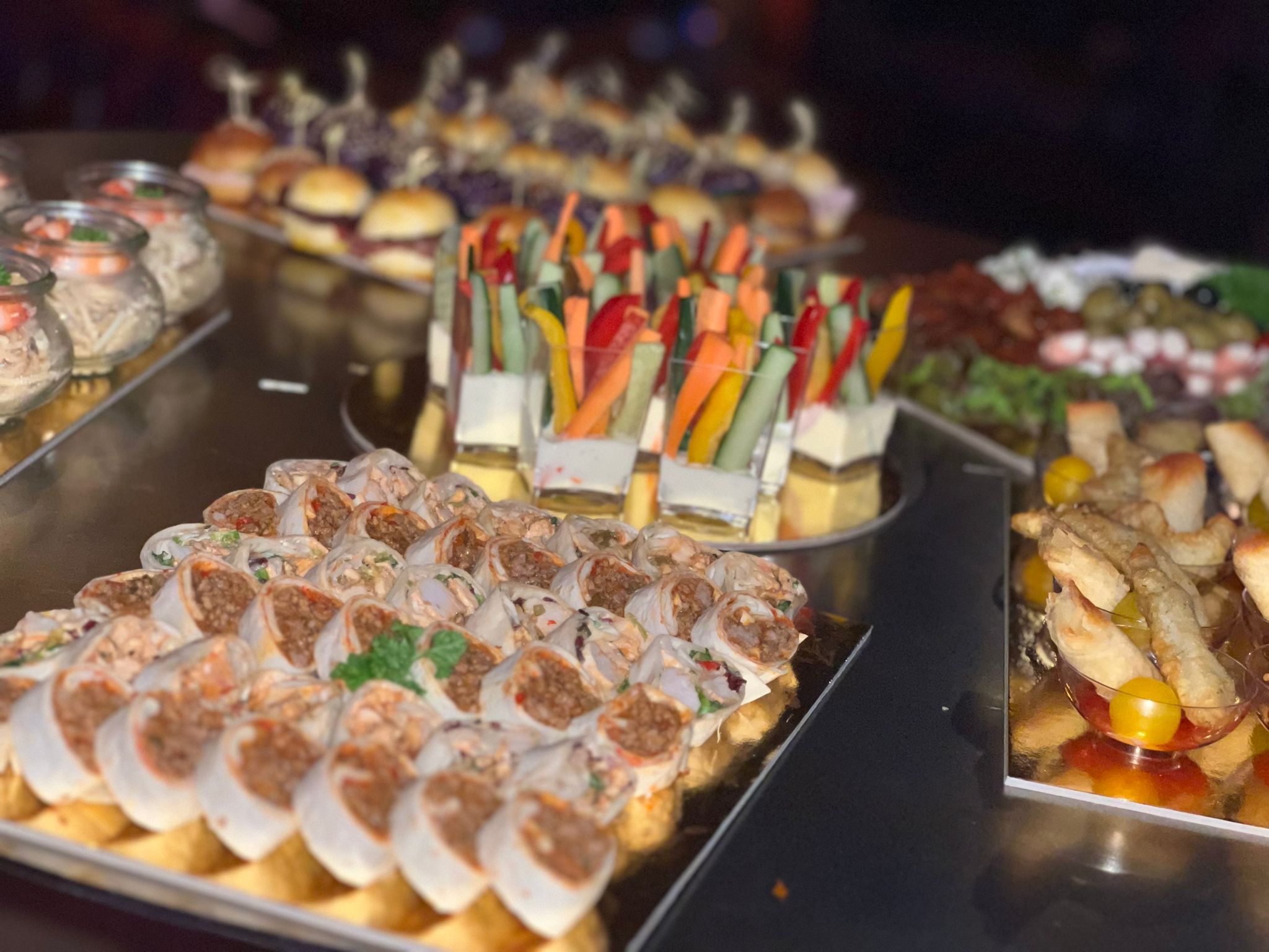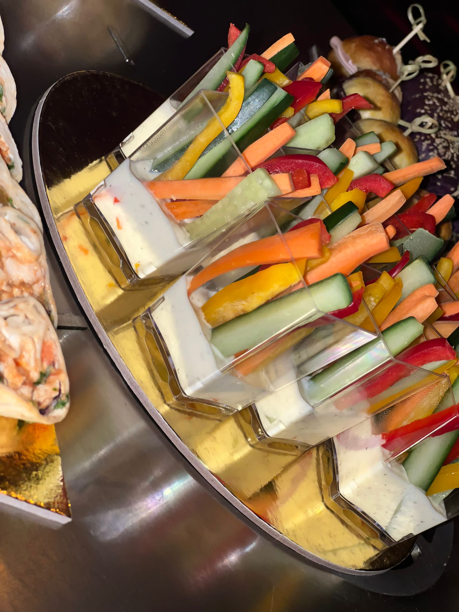 Säfte waren vorhanden, Kaffee und Kaltgetränke an der Bar erhältlich. Sobald eine Platte weitgehend leer war, wurde sie durch eine frische ersetzt. Und das bis etwa 20.00 Uhr. Qualität, Frische und Präsentation überzeugten.