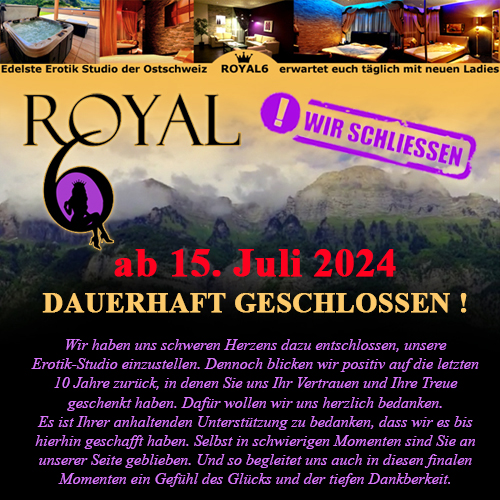 • Royal6 Walenstadt - Studio Schliessung zum 15.07.2024 https://www.royal6.ch/