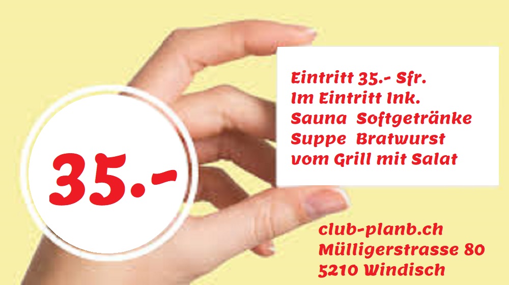 Club Plan B | Saunaclub | Mülligerstrasse 80 | 5210 Windisch | Aargau | Mittelland | Schweiz | Tel +41 56 442 48 42 | https://club-planb.ch/tagesplan/ | Google Maps | Plan-B Club Profil | Plan-B Sexforum | Plan-B Club Berichte |