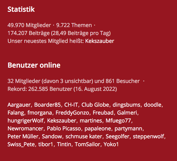 861 Besucher + 32 registrierte Mitglieder