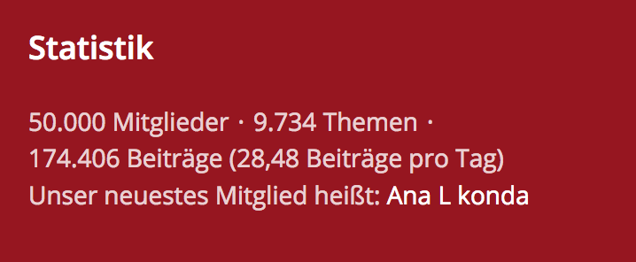 Das ging jetzt sehr schnell, gestern am 01.11.2024 erreichte das Forum die Zahl von 50.000 Mitgliedern.