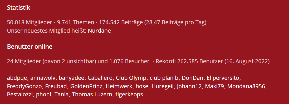 Das bedeutet, dass sich gerade rund 900 Leute gleichzeitig im Forum aufhalten!