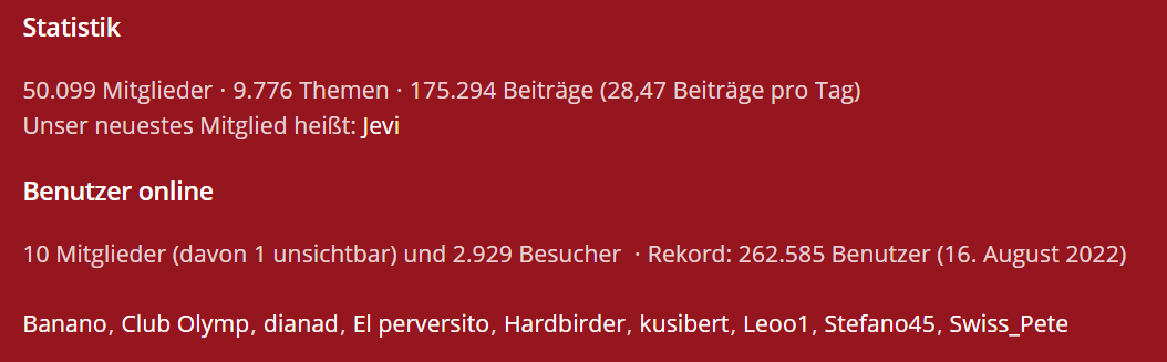 Nach der ausgedehnten Sommerflaute in den Clubs, ziehen die täglichen Besucherzahlen nun auch im Forum wieder kräftig an. Das könnt ihr auch besonders an den Zugriffen auf die einzelnen Themen sehen. Neu erstellte Themen erreichen oft schon innerhalb weniger Stunden etwa 800-1.000 Aufrufe!