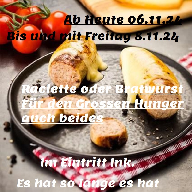 Im Eintritt Softgetränke Clubbenutzung Haussuppe 1 Portion Raclette mit Beilagen.
