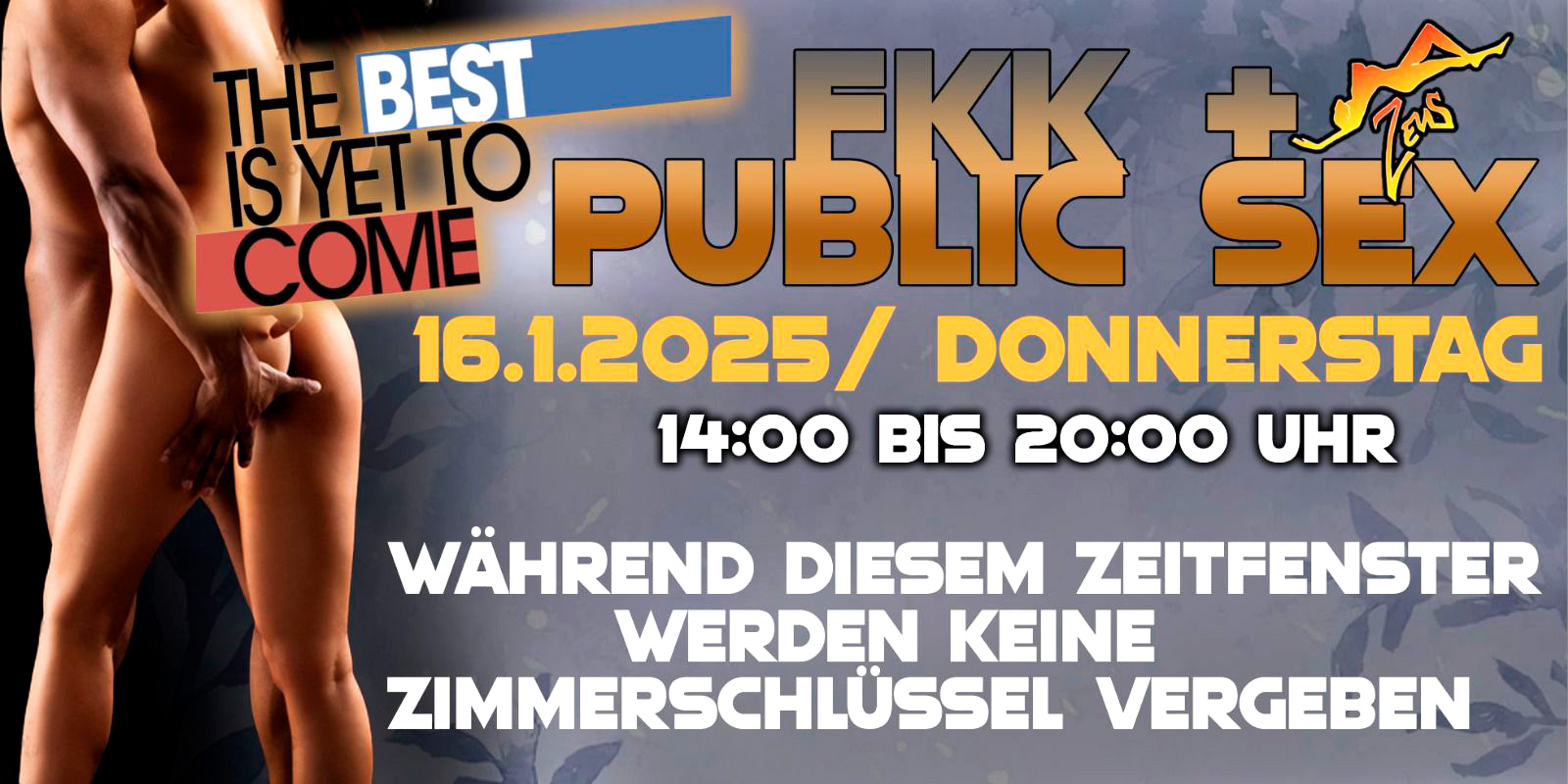 War gestern am Donnerstag, den 09. Januar 2025 von 17.00 - 22.00 Uhr am 1. Public Sex im Zeus.