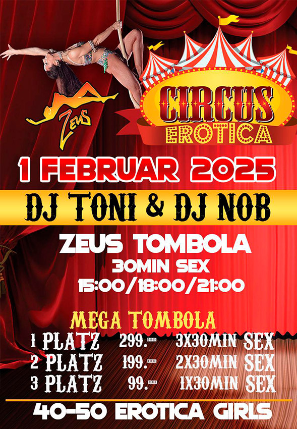 Circus Erotica mit 50 Girls im Zeus: Sa 01.02.2025