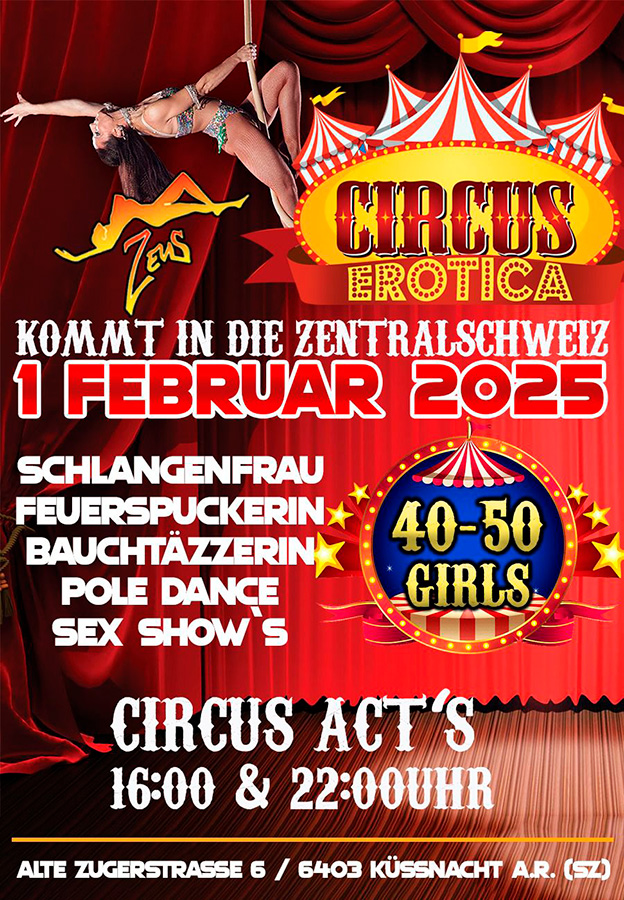 Circus Erotica mit 50 Girls im Zeus: Sa 01.02.2025