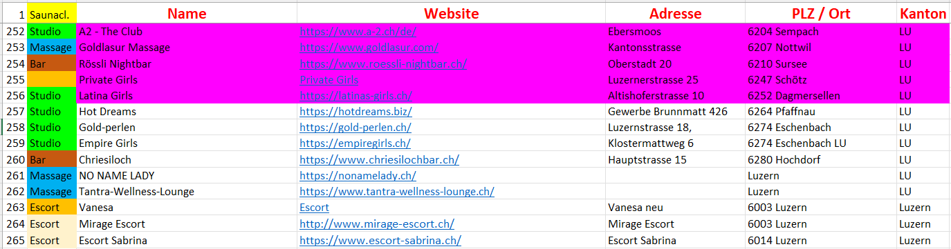 Merke: Erstens-entlang von Autobahnen findest du immer Angebote wenn du suchst. Oft Schrott aber nicht immer. Zweitens-Wenn Autobahn vorhanden bist du auch schnell in Ortschaften mit guten Läden. Von Sursee bist du schnell an Top-Adressen wie Freubad, Olymp, Neuenhof, Lisa' Girls oder beim Max im plan-b