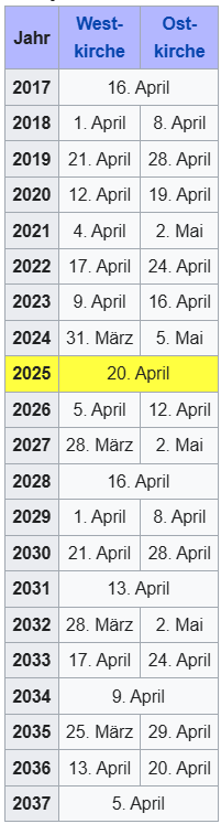 Vielleicht hilft es ja jemandem, seine Ostern zu Planen....