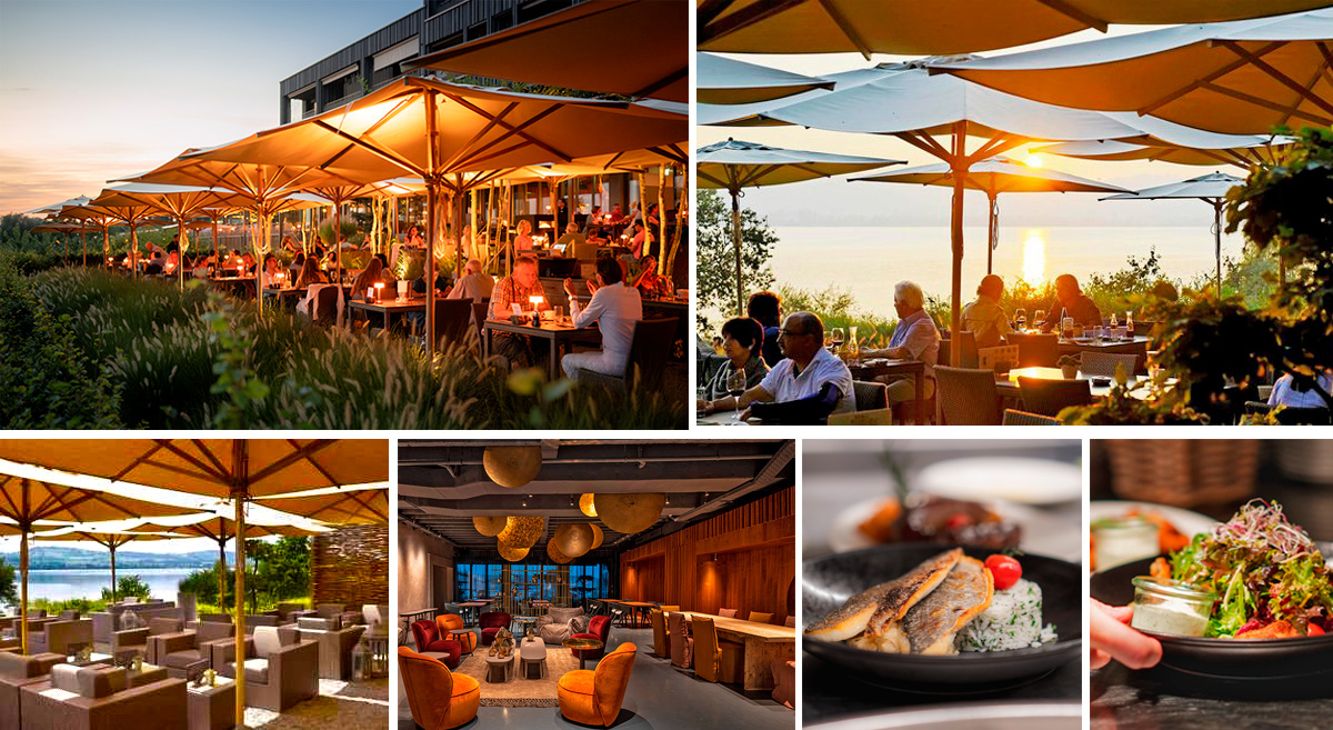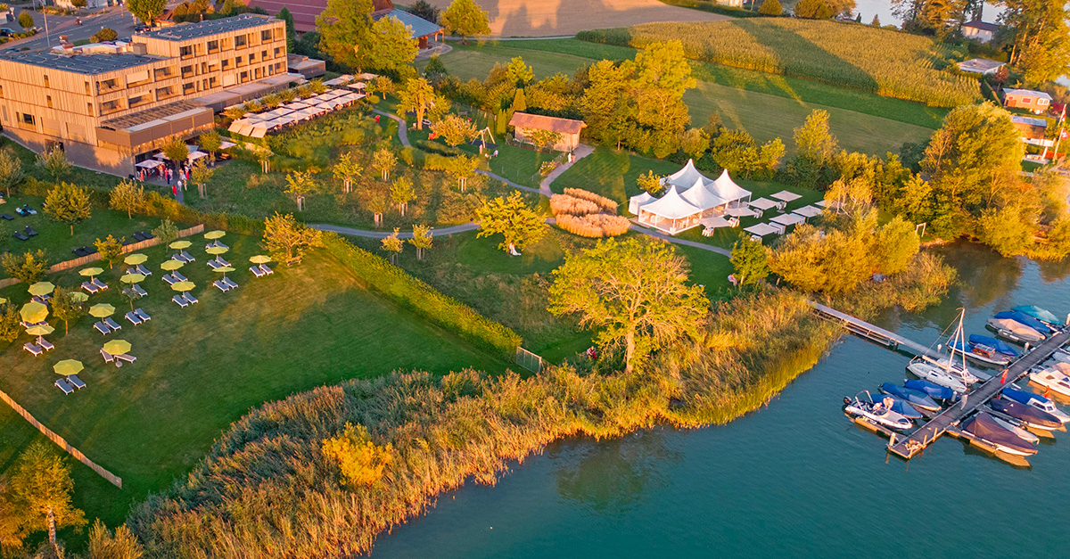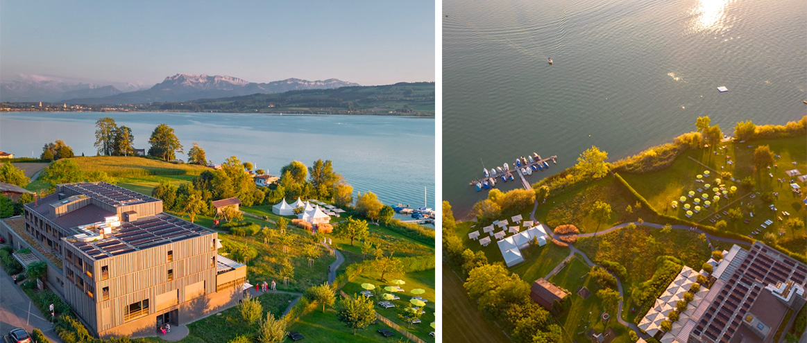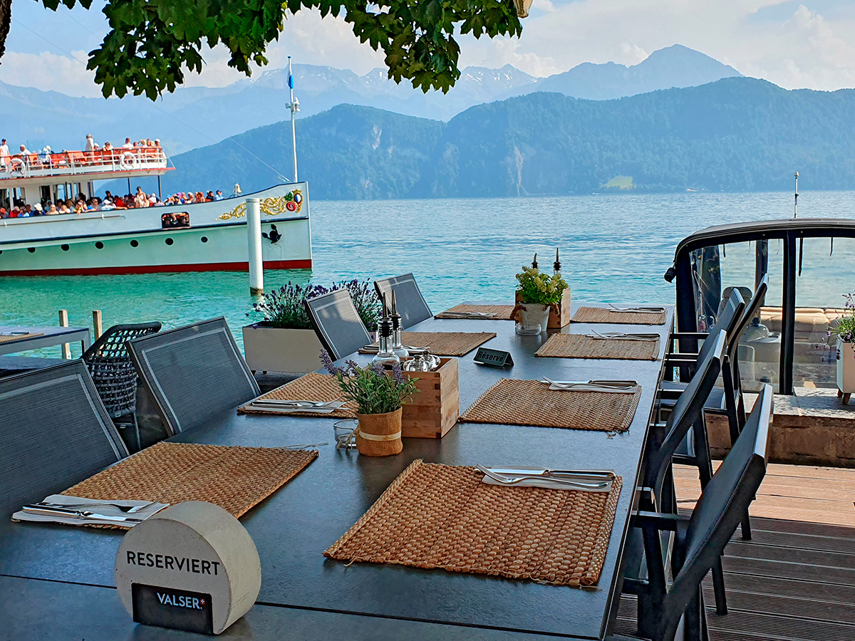 Am späten Nachmittag trudelten die Teilnehmer nach und nach ein, ganz entspannt, ganz ungezwungen. Das Seehotel überzeugte mit mehreren stilvoll gestalteten Restaurantbereichen, einer großzügigen Terrasse mit gemütlichen Lounge-Zonen sowie einem atemberaubenden Blick auf den See und den Pilatus. Ergänzt wurde das Ganze durch ein naturbelassenes Parkgelände, das sanft von der Terrasse bis hinunter zum hoteleigenen Steg und zur Badestelle führte. Mehr Schweiz-Idylle geht kaum.