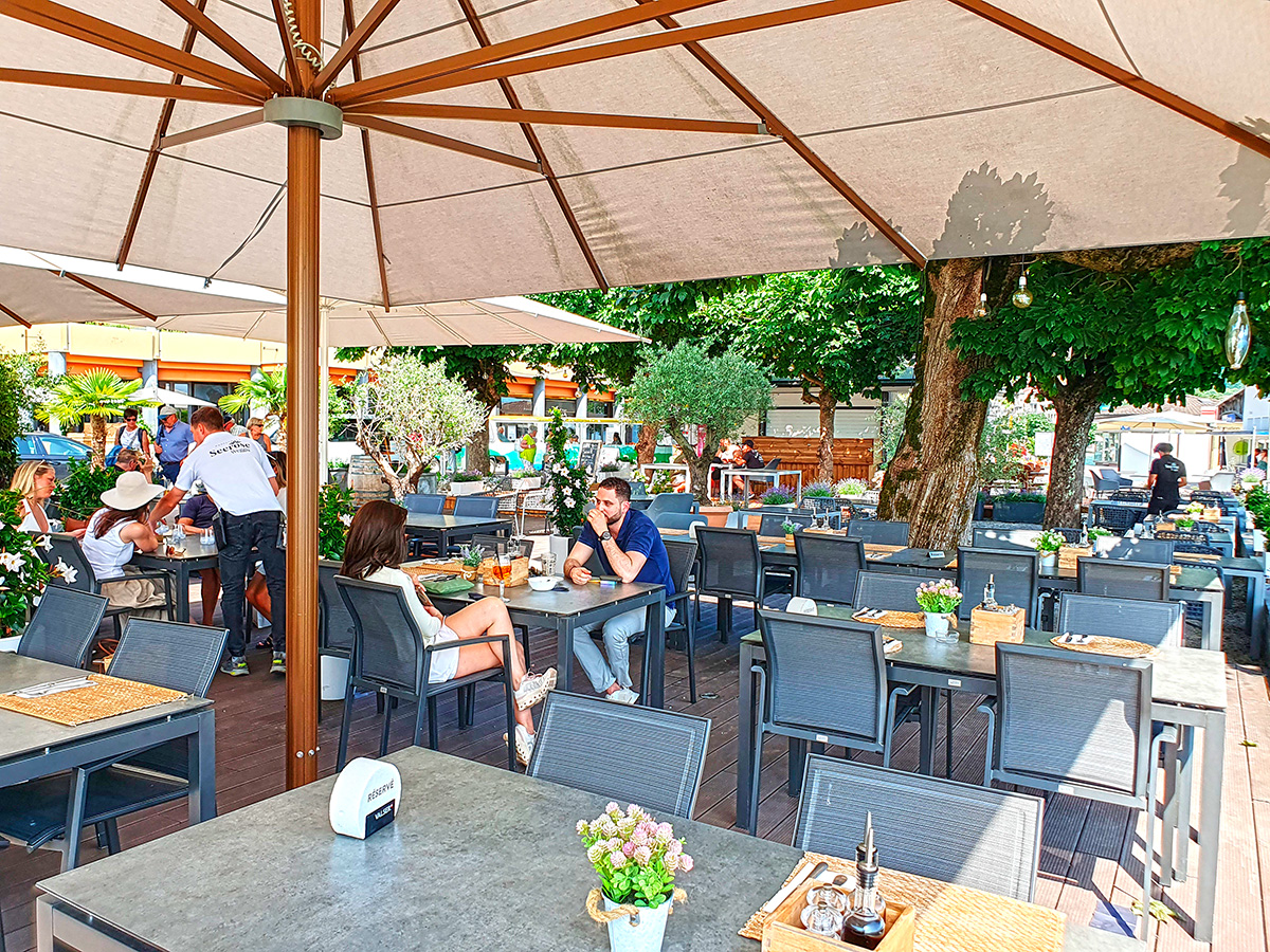 Das Treffen fand am Vierwaldstättersee in Weggis im Restaurant Seerose statt. Die Lokalität war bei diesem Wetter ein Traum. Wir hatten unsere Tische direkt am Wasser.