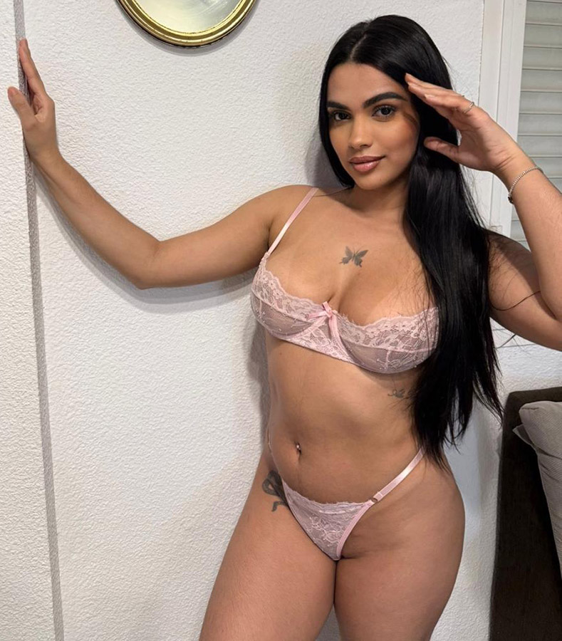 m.E. sehr hübsches Gesicht, lange dunkle Haare (ohne Extensions !), C-Cup-Naturglocken mit dicken dunklen Saugnippeln und den obligaten Bikini-Streifen, am Bauch ein paar Milligramm zuviel (stört mich aber nicht, sie sagt, sie möge McDo...und Sushi, soll ich ihr das nächste mal mitbringen)...und ihr Hintern ist rund und knackig