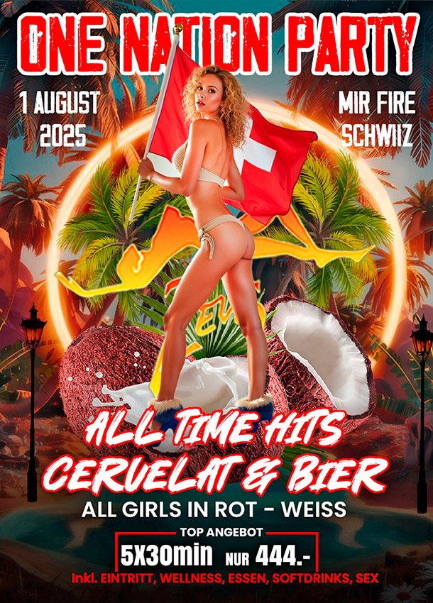 Am Nationalfeiertag bebt das Zeus: Über 40 heiße Girls laufen in rot-weißer Nationalbeflaggung auf und zollen dir, den Eidgenossen, den Tribut, den ihr verdient!