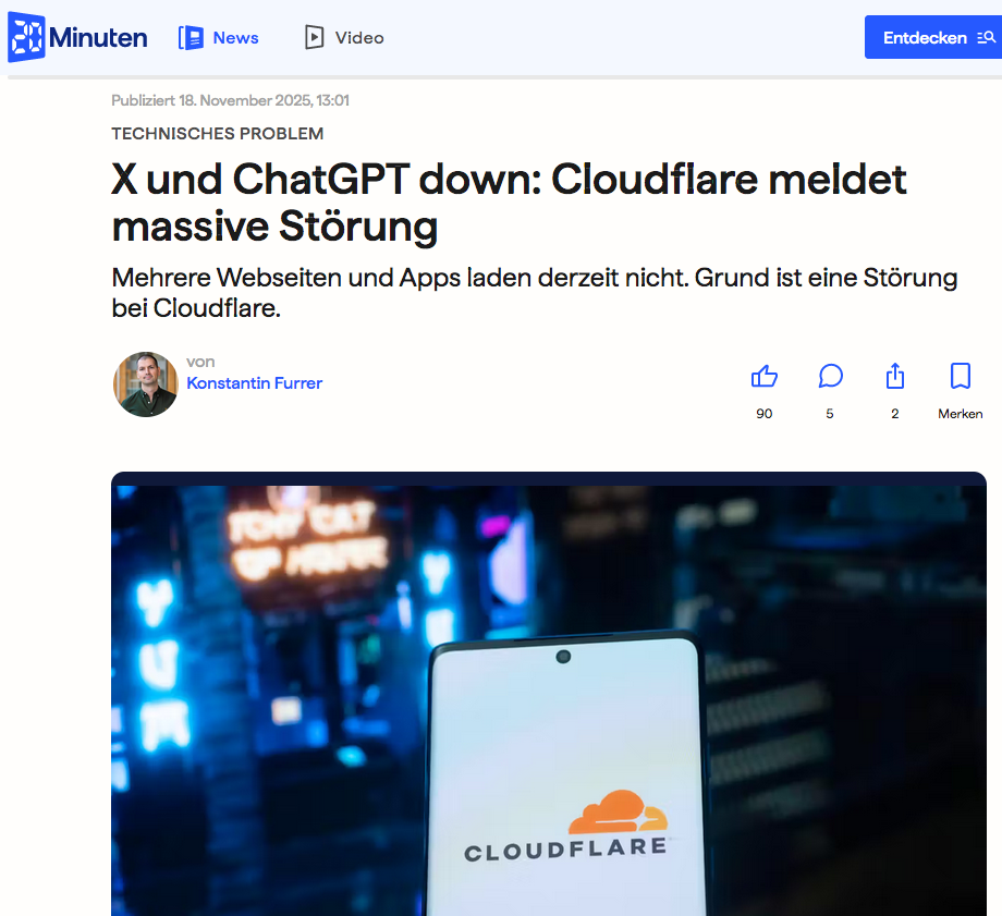 Am Mittag des 18. November 2025 berichteten zahlreiche Nutzer von weitreichenden Ausfällen und Störungen bei vielen bekannten Online-Diensten. Betroffen waren unter anderem Discord, die PayPal, OpenAI (ChatGPT) und Ikea.