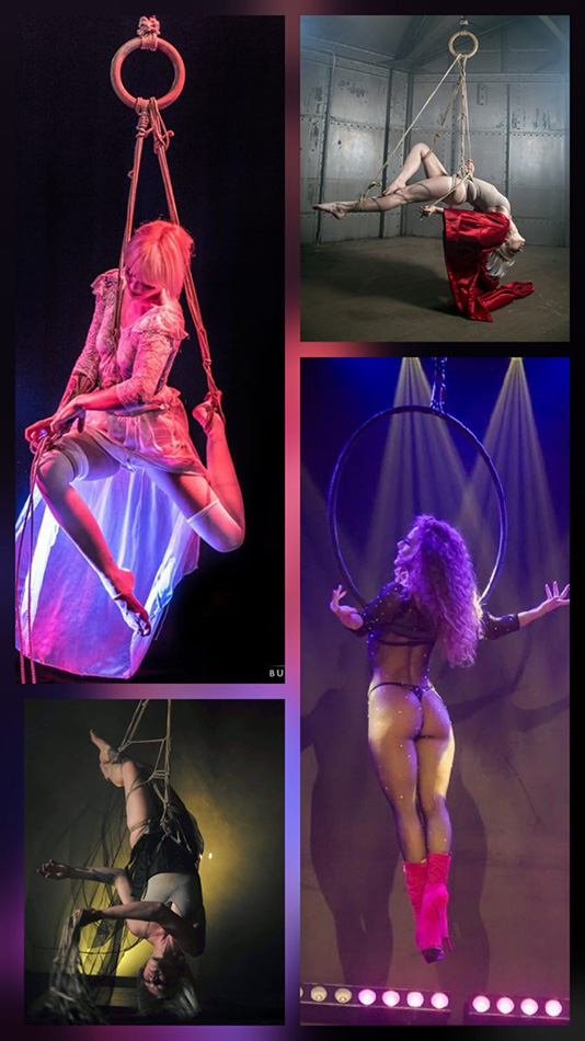 Für erstklassige Unterhaltung sorgen internationale Top-Showgirls aus dem Bereich Erotik-Akrobatik: Kassia aus Polen fasziniert mit intensiven Shibari Self-Bondage Shows am Reifen, während Karina aus der Slowakei mit ihren erotischen Akrobatik-Performances an den Strapaten begeistert. Beide treten mehrfach über den ganzen Tag verteilt auf, damit garantiert niemand diese Highlights verpasst.